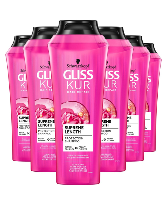 Gliss Kur Supreme Length shampoo geeft directe soepelheid aan lang haar.Is je lange haar futloos en beschadigd? Om de kwaliteit van lang haar te verbeteren en te behouden, is een aangepaste verzorging nodig. Gliss Kur Supreme Length biedt bescherming tegen schade, directe soepelheid van de wortels tot aan de puntjes, verwijdert overtollig talg aan de wortels en bevat 90 % ingrediënten van natuurlijke oorsprong.