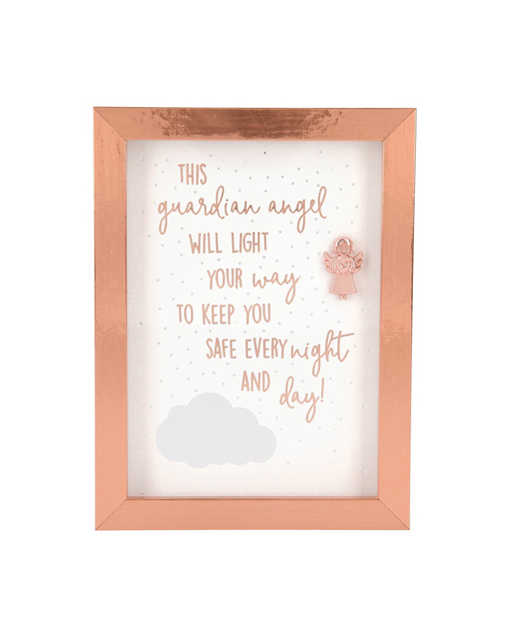 Een leuke collectie fotolijstjes met tekst van Depesche! In deze editie een brons lijstje met een witte achtergrond “This guardian angel will light yout way, to keep you safe every night and day!”