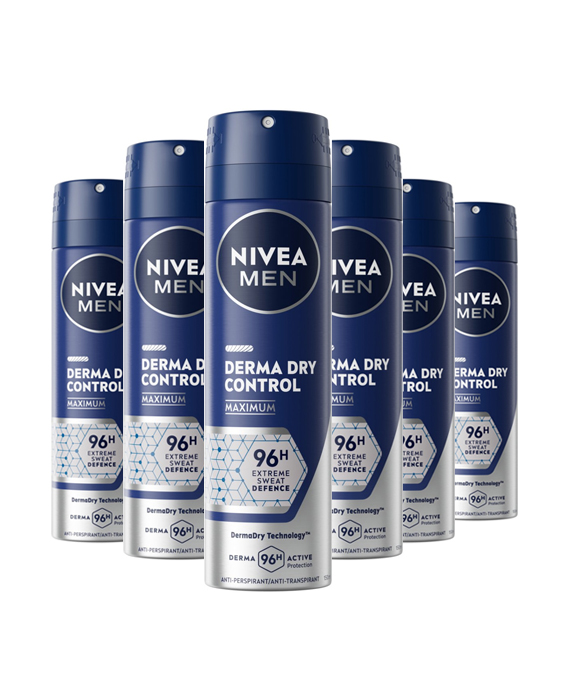 NIVEA MEN Derma Dry Control Anti-Transpirant Deodorant Spray is NIVEA’s sterkste anti-transpiratiespray die 96 uur* bescherming biedt tegen overmatig zweten, natheid en geur.